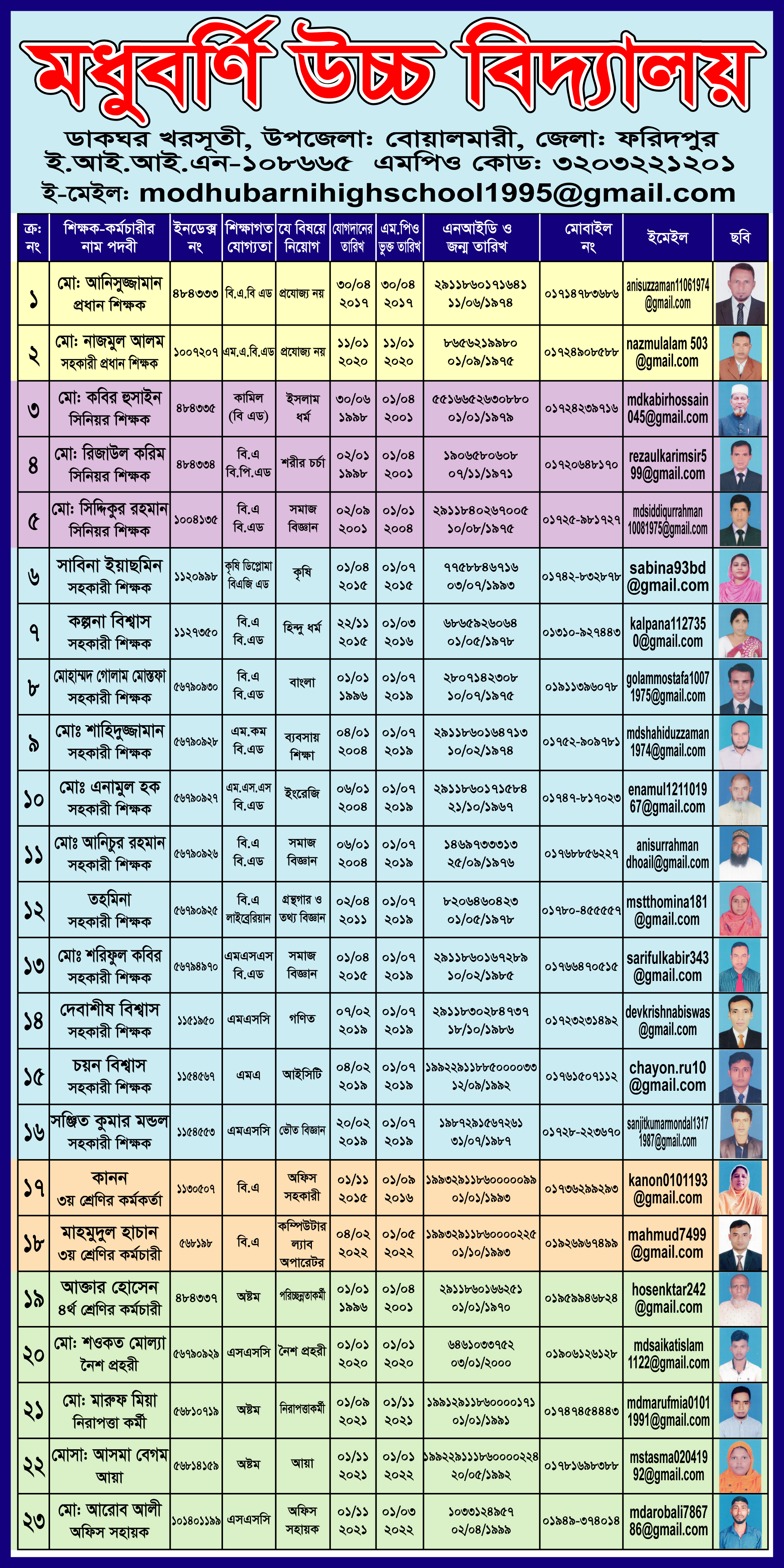 শিক্ষকদের তথ্য